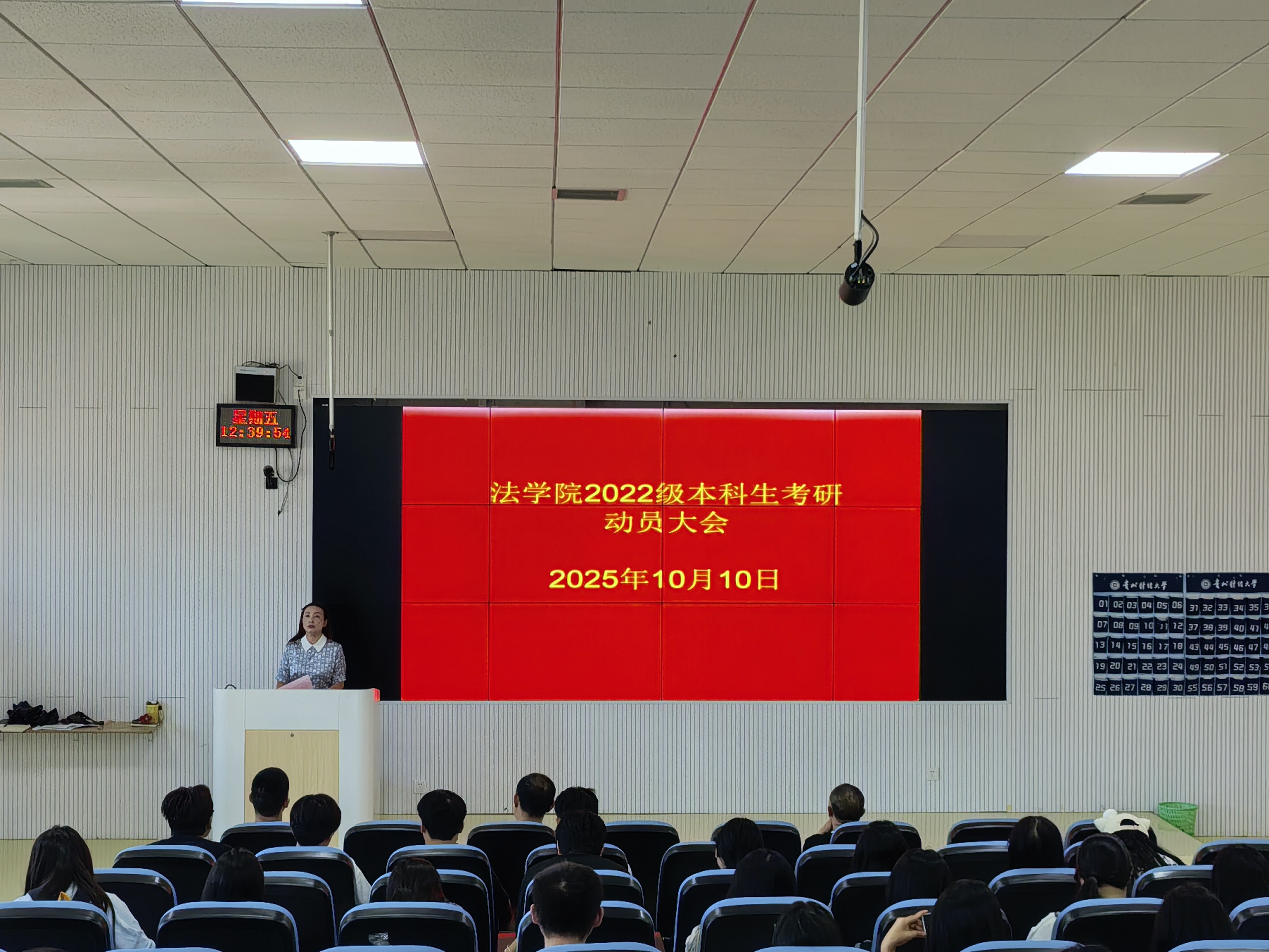 (亚美·体育 潘吉脉 报道、摄影)为帮助2022级本科生明确考研目标、把握备考方向,凝聚考研信心与力量,10月11日,我院22级本科生考研动员大会在乐学楼201召开。院党委书记邵新顺、副院长(主持工作)曹务坤、副书记彭华、辅导员潘吉脉及2022级全体本科生参加会议,会议围绕考研政策解读、备考规划指导与思想动员展开,为即将踏上考研征程的学子们注入强劲动力。