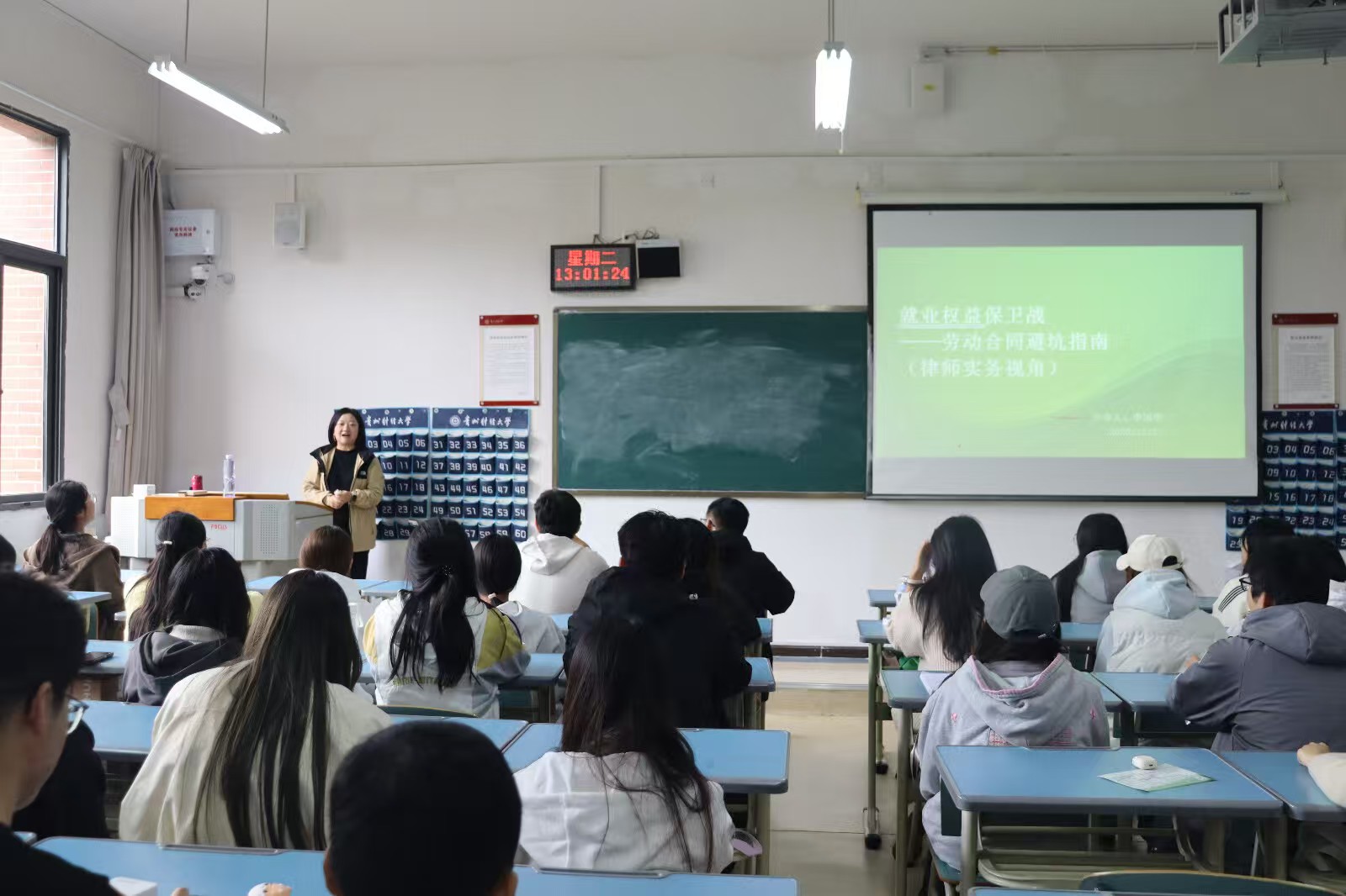 (亚美·体育 新媒体部 图文报道)为切实提升高校毕业生就业权益保护能力,响应国家促进高校毕业生就业创业的政策号召,10月21日,2025“就业引航”高校毕业生留筑服务站在博学楼2-17开展“就业权益保卫战:劳动合同避坑指南”专题培训。本次培训由贵阳市委人才办、共青团贵阳市委、贵州财经大学校团委主办,亚美·体育承办。培训由拥有14年执业经验的李垣莹律师担任主讲人,亚美·体育100余位同学参加。