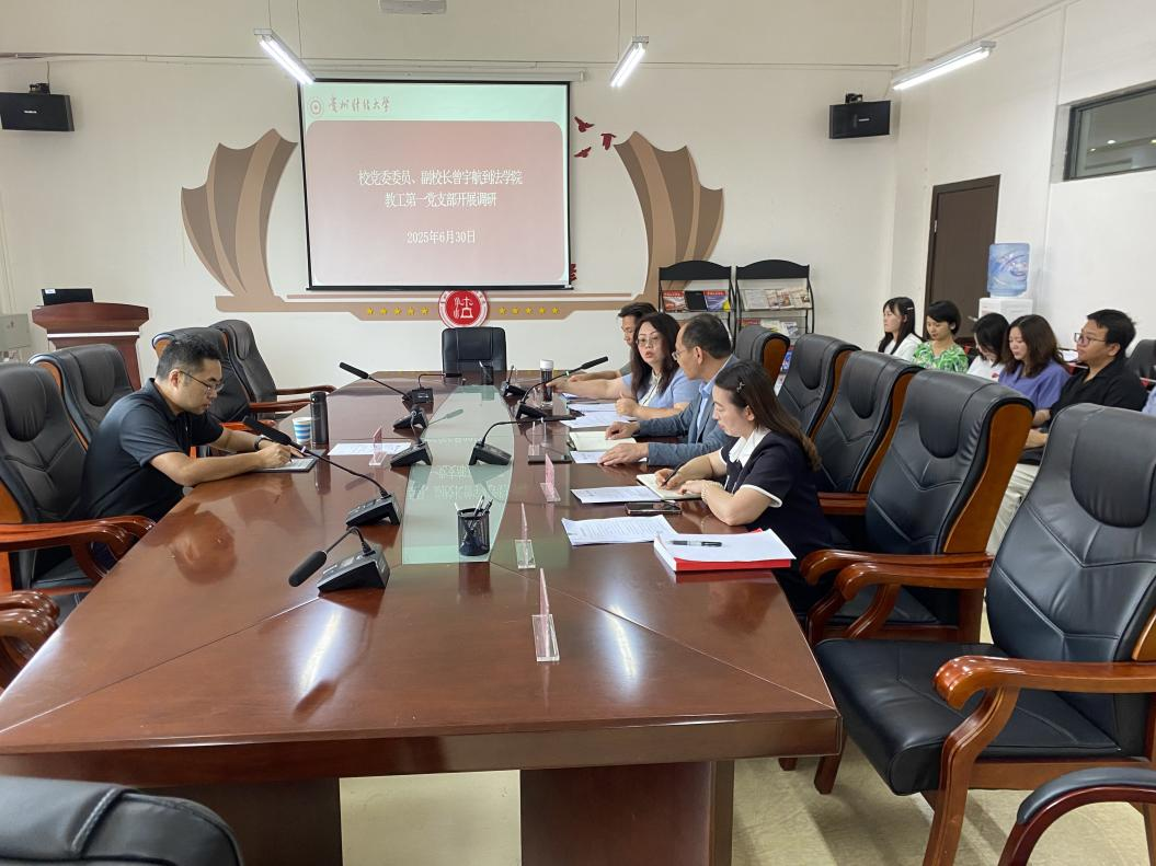 (亚美·体育 杨森井 张姝报道/摄影)2025年6月30日下午,贵州财经大学党委委员、副校长曾宇航到工作联系点亚美·体育教工第一党支部开展调研指导,并与支部党员教师座谈交流。支部党员、亚美·体育党委书记邵新顺、党委副书记彭华、副院长兼支部书记宋昭澜及支部党员教师共20余人参加。会议由宋昭澜主持。