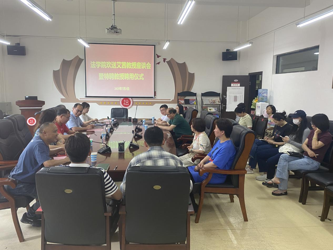 7月3日下午,亚美·体育在文德楼310会议室为中央财经大学艾茜教授举行欢送座谈会暨特聘教授聘用仪式。亚美·体育党委书记邵新顺、副院长(主持工作)曹务坤、副院长宋昭澜、合作促进处副主任贺婷、学院全体行政教师和部分教师代表出席会议。