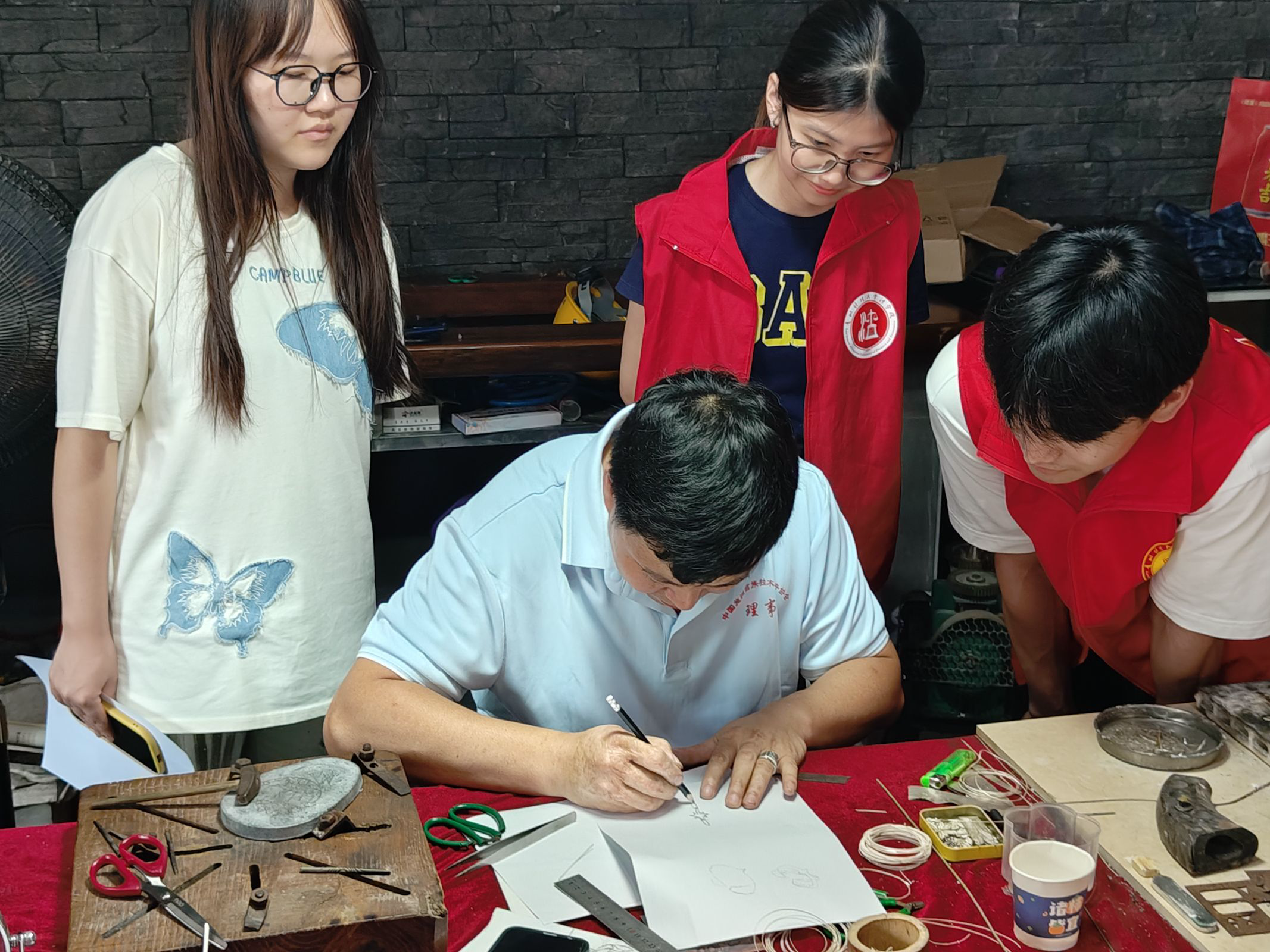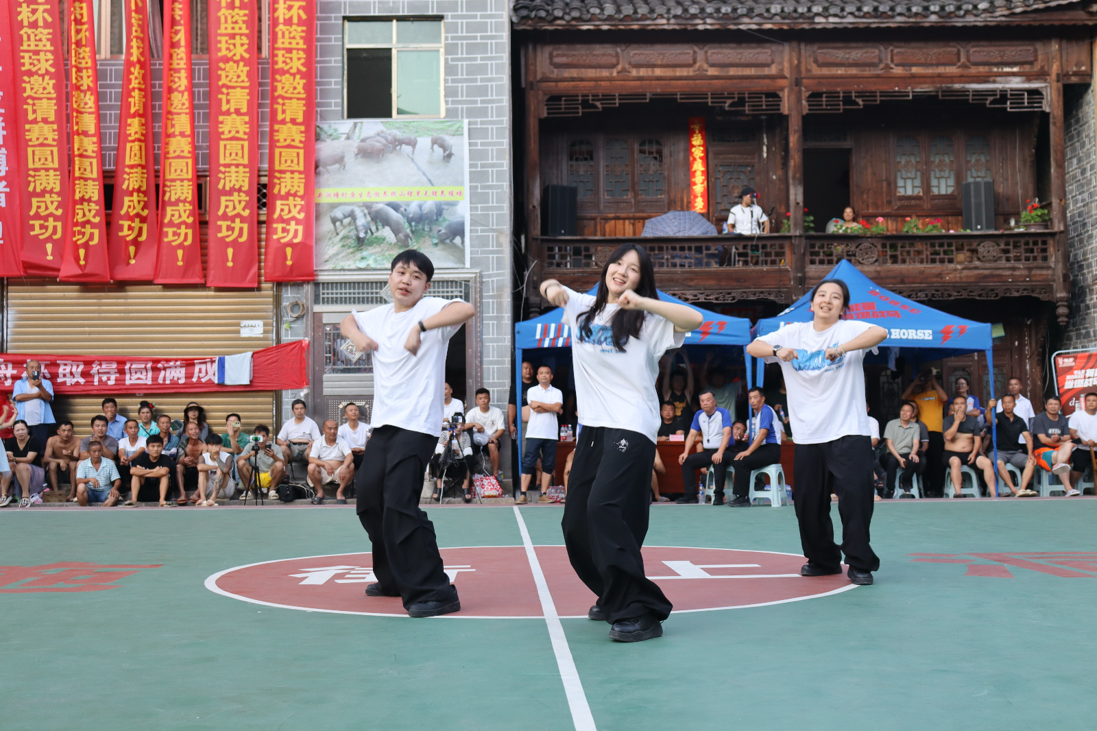 在苗族研究院,实践团队与专家学者深入交流,共话民族文化与法治融合,探讨如何将苗族传统习俗与现代法治有机结合,为乡村治理提供新思路;在施洞法庭,实践团队与庭长探索调解与民族习俗的相互影响,学习法庭在处理民族地区纠纷时的创新经验,为法治乡村建设提供有益参考;在文化振兴方面,团队成员带来的青春热舞助力村BA,点燃赛场激情,丰富村民文化生活;推广普通话活动,帮助村民提升语言沟通能力,更好地融入现代社会;制作苗族银饰活动,将非遗文化与法治创新相结合,通过与非遗传承人就银饰品牌打造、非遗技艺传承中的法律问题进行探讨,助力非遗文化在法治轨道上实现创造性转化和创新性发展。夜幕降临,篝火晚会上,“青春法盾,无毒无艾”队带来的诗歌朗诵《青春中国》以真挚的情感和激昂的语调演绎经典,展现青春力量,传递爱国情怀,省委组织部驻岗党略村第一书记唐林海和带队老师潘吉脉纷纷登台献唱,现场反响热烈。师生与村民们载歌载舞,在欢声笑语中增进了彼此的感情,也让民族团结之花在苗寨绚烂绽放。